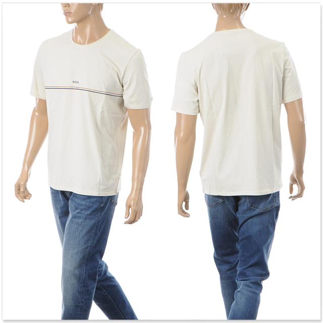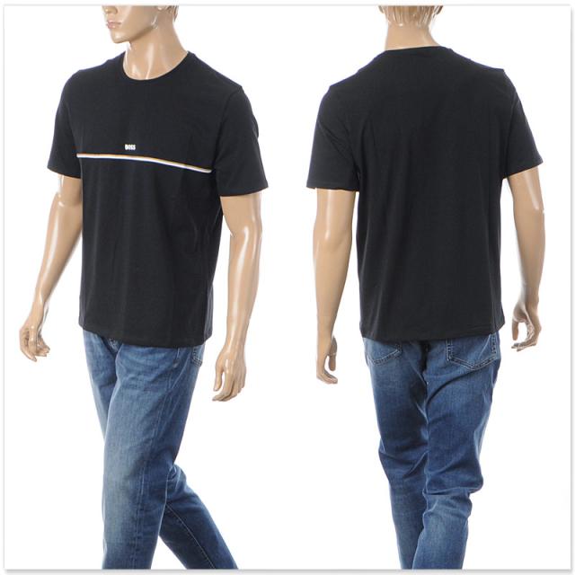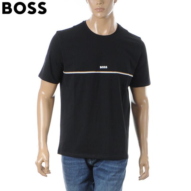 ヒューゴボス HUGO BOSS Tシャツ メンズ 50515395 Unique 半袖 クルーネック ブラック ホワイト ストレッチ 綿 ロゴ入 ブランド 大きいサイズ カジュアル