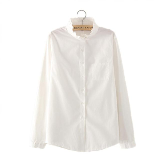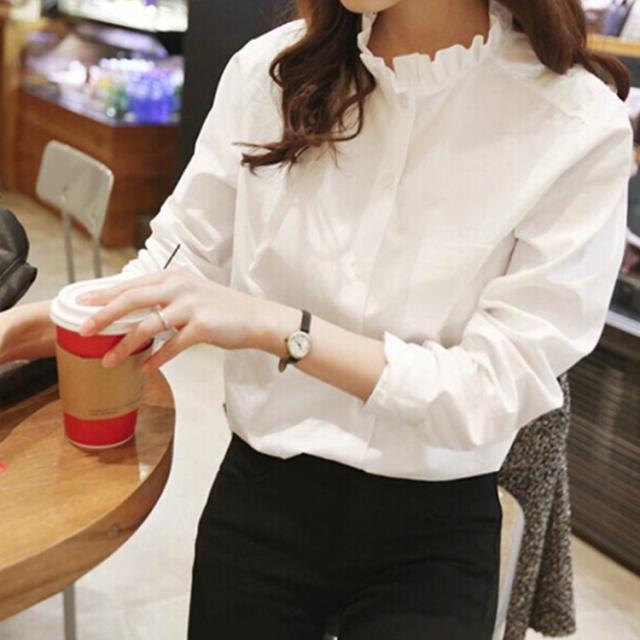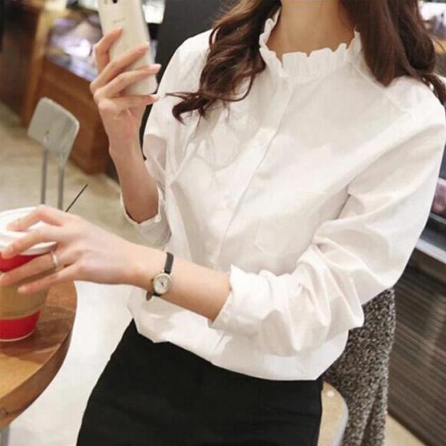 フリル長袖 レディース スタンドカラートップス フリルネック Yシャツ カジュアル 白シャツ ビジネス 白ブラウス 夏 きれいめ 大きいサイズ フォーマル オフィス 通勤 春 ブラ