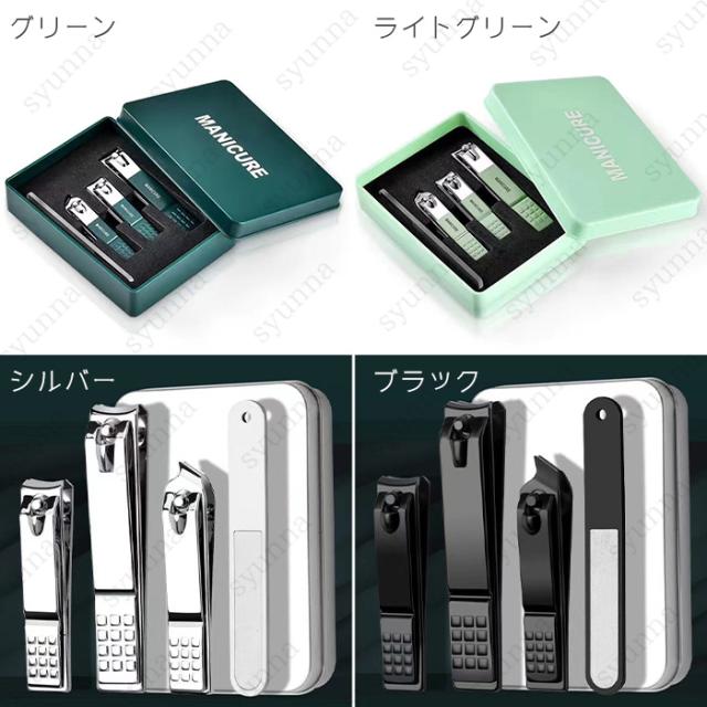 爪切り 4点セット 日本国内当日発送 グルーミングセット 爪やすり ステンレス製 つめきり 飛び散り防止 爪磨き ネイルケア 収納ボックス付き 手足両用 #br220
