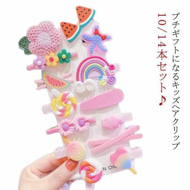 | プチギフトになるキッズヘアクリップ10/14本セット♪ ポンポンキャンディーやお星さまモチーフ、虹、花、果物の可愛いヘアアクセサリーセット。 すべらないクリップパット付き。 子ども用プレゼントにも。 プチギフトになるキッズヘアクリップ14本セット。 色使いもデザインも可愛く、洋服とも合わせやすくて重宝してます。 合わせて使ったり、お友達や姉妹で色違いも可愛いですよ。 | |