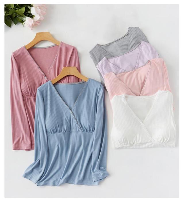 授乳期 前開き 授乳口 マタニティ 可愛い 長袖タイプ 授乳服 トップス 授乳 授乳 簡単授乳 マタニティ 産前産後兼用 パジャマ 出産準備 妊婦服 産前 産後 授乳インナー トップス 下着 肌着 柔軟 優しい着心地 おしゃれ