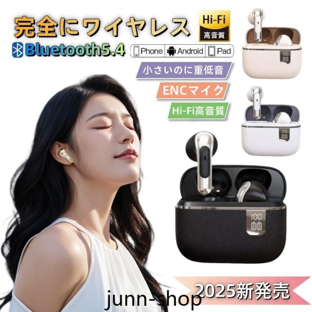 ワイヤレスイヤホン Bluetooth5.4 圧迫感ゼロ led表示 防水 ブルートゥース 高音質 ios android iphone16 ENCノイズキャンセリング 超軽量 左右分離 小型 最新型