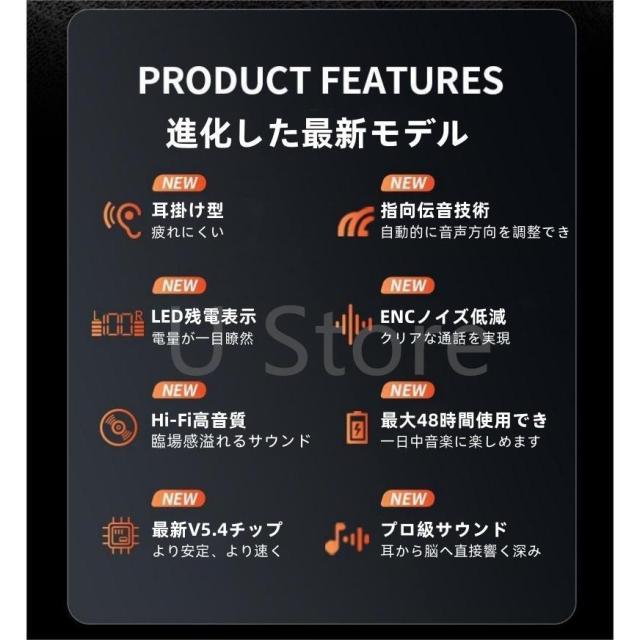 2025年新登場 ワイヤレスイヤホン 耳掛け型 イヤホン イヤフォン 完全ワイヤレスイヤホン 右耳 片耳用 両耳 左右分離 究極のフィット感 オープンイヤー Bluetooth5.4 マイク付き ios iPhone/Android適用 Type-C充電 Type‐C急速充電 パワフルな低音 IPX7防水性能 耳を塞がない マイク内蔵 簡単操作 アプリ ブラック スポーツ 音楽 ゲーム Hi-Fi音質 自動ペアリング タッチコントロール ブルートゥース 超軽量 超長待機 通勤 通学 プレゼント お歳暮ギフト