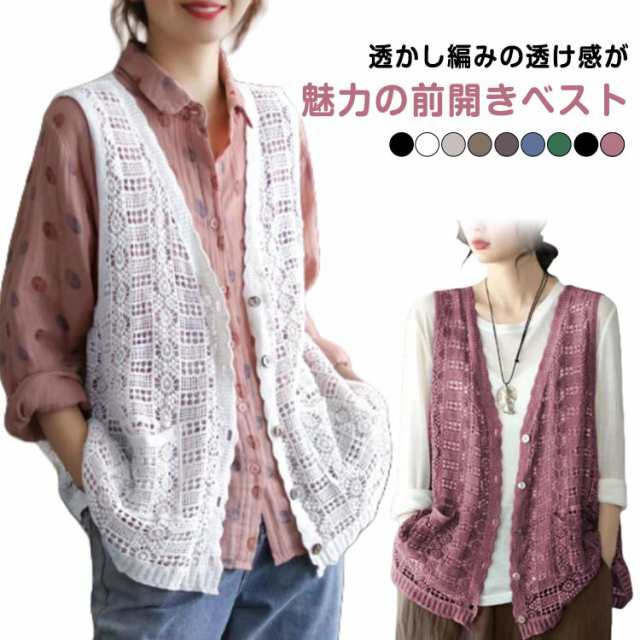 透かし編み ニットベスト 重ね着 レトロ ジレ 編み 透かし彫り ナチュラル ノースリーブ 透かし編み レディース 薄手 春夏 レイヤード カジュアル ショート丈 トップス トップス 通勤 大人 女性 可愛い 大きいサイズ カジュアル おしゃれ