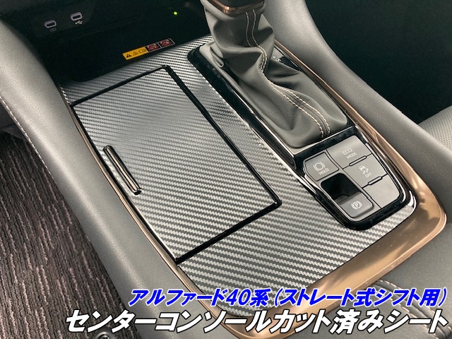 アルファード40系 センターコンソールカット済シート ストレート式シフトレバー用 3Mシート使用カーボン柄などカラー選択 キズ防止 指紋低減 カスタムパーツ