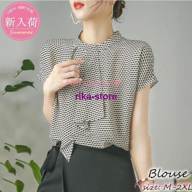 連携キーワード:ブラウス レディース 半袖ブラウス 春夏 オフィスブラウス 千鳥格子 リボンネック オシャレブラウス レショントップス 韓国風 大人 上品 通勤OL ゆったりシャツ 40代 30代 50代
