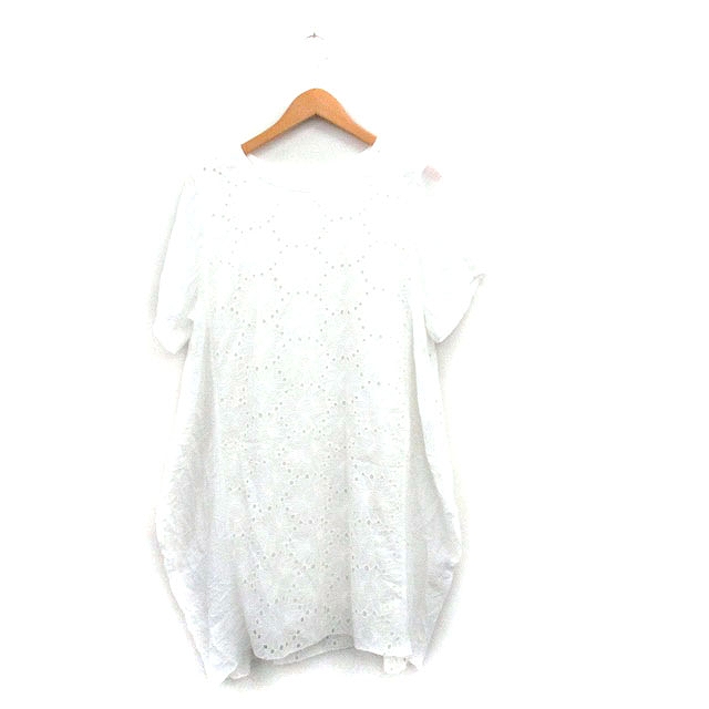 【中古】コルザ COLZA 総レース ワンピース 半袖 膝丈 コットン LL ホワイト 白 /KT4 レディース