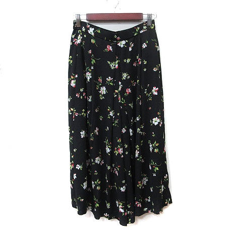 【中古】グローバルワーク GLOBAL WORK ワイドパンツ スカンツ 花柄 M 黒 ブラック /YI レディース