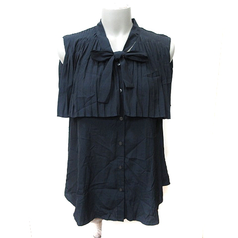 【中古】ナノユニバース nano universe ブラウス ノースリーブ ボウタイ リボン 38 M 紺 ネイビー /YI レディース