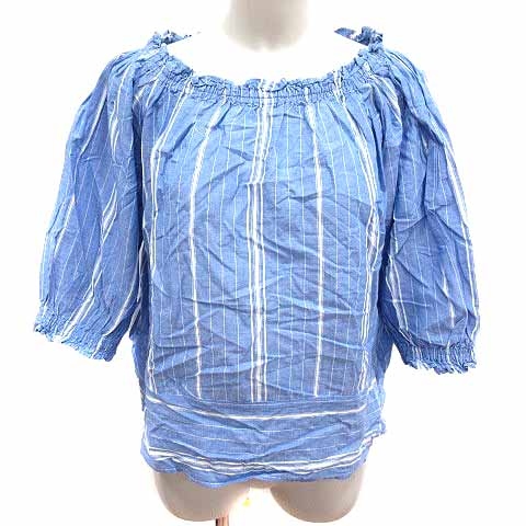 【中古】スタディオクリップ Studio Clip ブラウン ストライプ 七分袖 麻混 リネン混 L 青 ブルー 白 /YK レディース