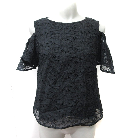 【中古】アプワイザーリッシェ シャツ ブラウス プルオーバー カットアウト 半袖 刺繍 レース 2 M 黒 /YI レディース