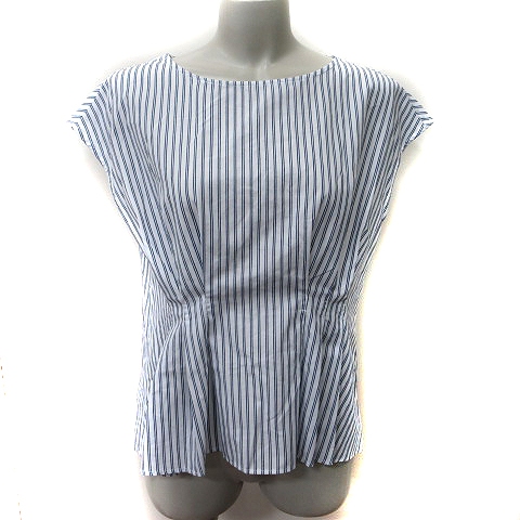 【中古】アーバンリサーチ シャツ ブラウス ストライプ フレンチスリーブ F 白 ホワイト 紺 ネイビー /YI レディース
