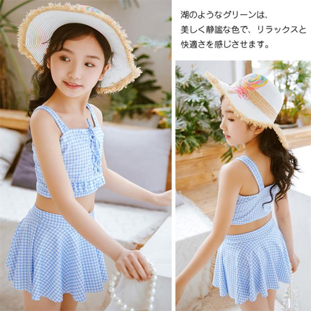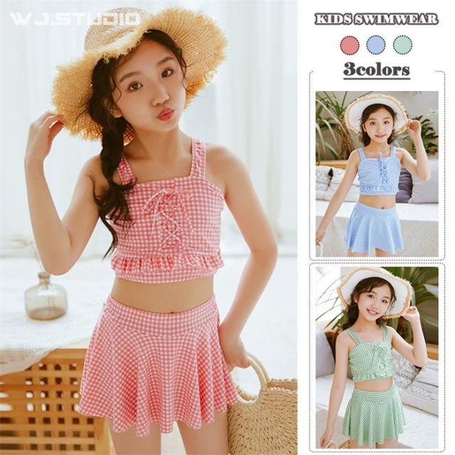 新作 女の子 水着 スカート チェック柄 スクール水着 スポーツウエア トップス キッズ 水着 セパレート 子供 水着 スイムウェア タンキニ ジュニア 女の子 水着 ガールズ 子ども用 中小学生 女の子みずぎ スイミング プール スクール水着 110 120 130 140 150 上下セット