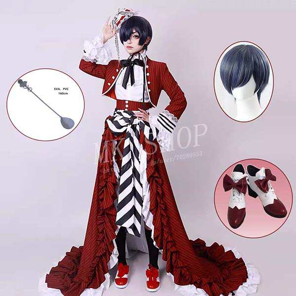 送料無料 黒執事 風 シエル ファントムハイヴ コスプレ衣装 ウィッグ 靴 道具コスチューム 演出服 アニメ ゲーム ハロウィン cosplay 変装