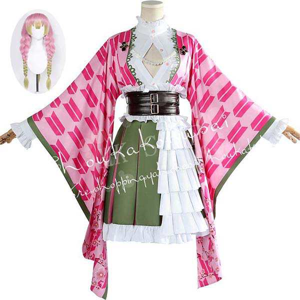 送料無料 鬼滅の刃 甘露寺蜜璃 かんろじみつり 5周年記念祭 コスプレ衣装 ウィッグ ハロウィン仮装 文化祭