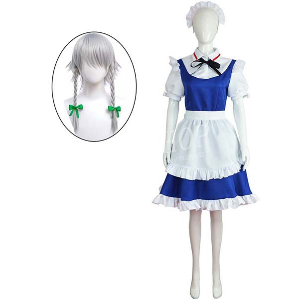 送料無料 東方project 風 十六夜咲夜 いざよいさくや コスプレ衣装 ウィッグ変身 仮装 ハロウィン クリスマス コスチューム cosplay