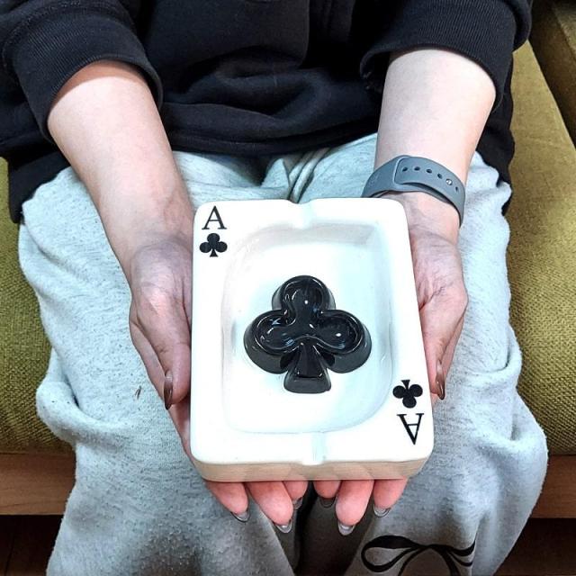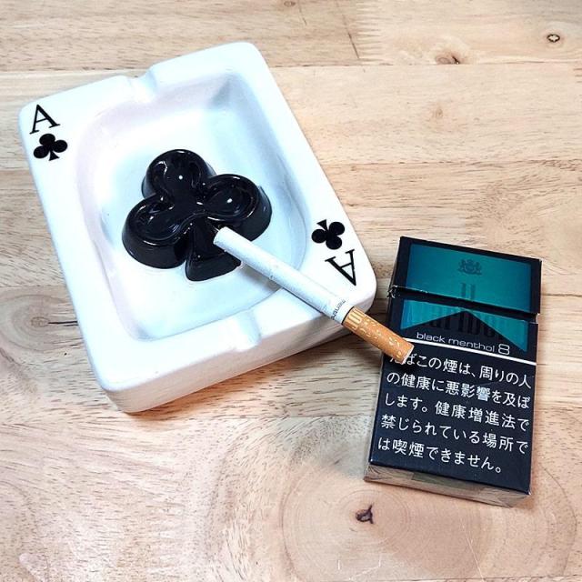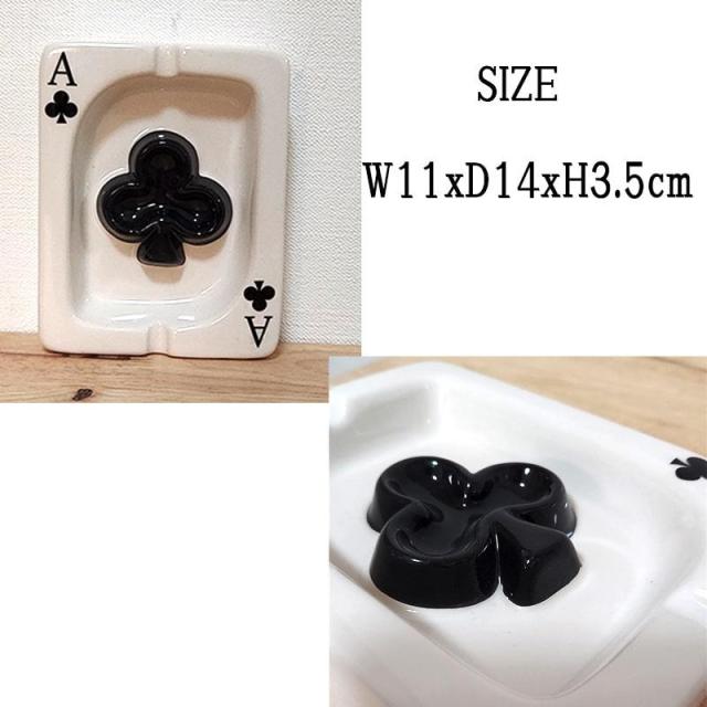 卓上灰皿 ユニーク トランプ クローバー おしゃれ 喫煙具 かわいい アメリカン タバコ 陶器 ブラック インテリア 小物入れ 黒 かっこいい メンズ プレゼント ギフト