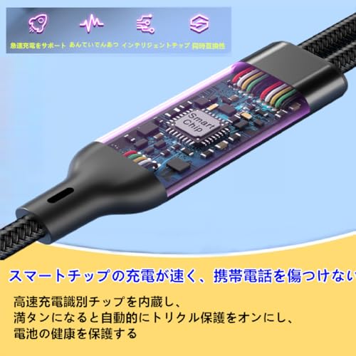 【持ち運びに便利】タイプc ケーブル長さ1.5メートル、小型、軽量、持ち運びに便利。家庭、車、オフィス、旅行に適しています。例えば、このケー