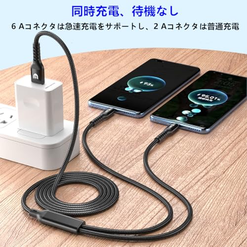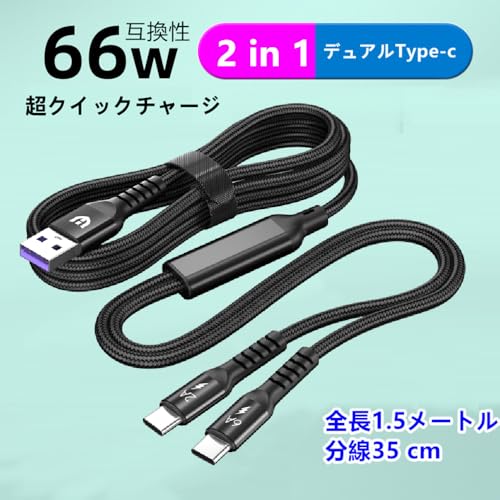 商品の説明 USB タイプC 二股ケーブル 2in1 充電ケーブル USB A to Type C+Type C 充電アダプタ PD対応 66W/6A 急速充電 データ転送 1.5M Y字 2台同時充電 高耐久 ケーブル ナイロン編み 断線防止