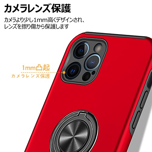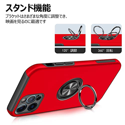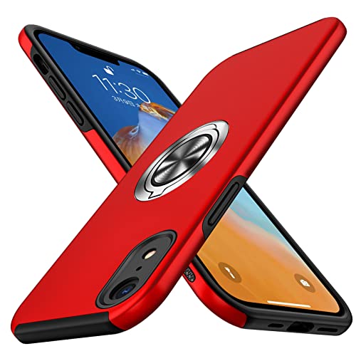 iPhone XR リング付き ケース 耐衝撃 tpu pc 二重構造 全面保護 一体型スマホケース アイフォンxr ケース 衝撃吸収 シリコン 360°回転 スタンド機能 軽量 薄型 車載ホルダー対応 6.1インチ 指紋防止 人気 携帯カバー 赤 送料無料