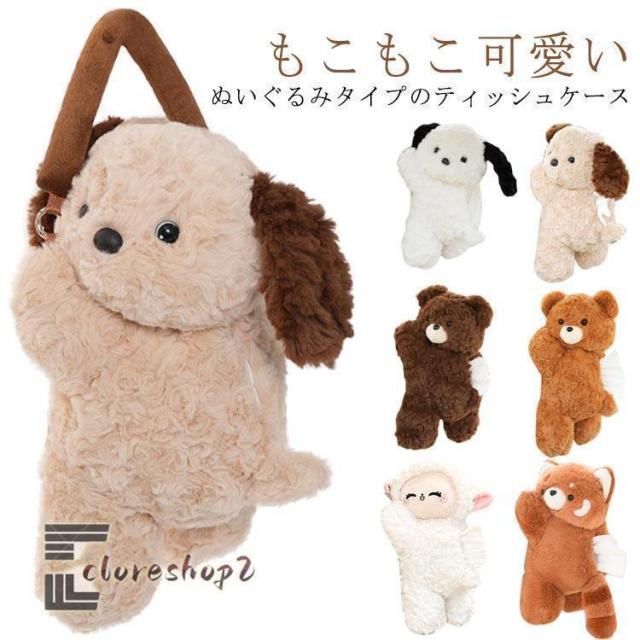 可愛い 猫 ティッシュホルダー 車載 ティッシュカバー 犬 車 ティッシュボックス ティッシュケース ぬいぐるみ くま うさぎ パンダ 吊り下げ ティ