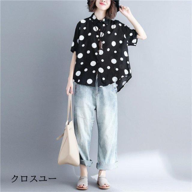 シャツブラウス トップス チュニック ブラウス レディース 大きいサイズ 半袖 体型カバー 着痩せ ドット柄