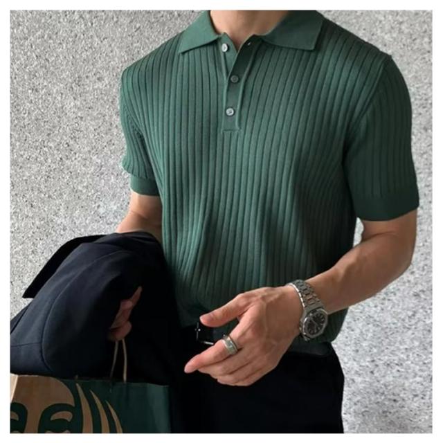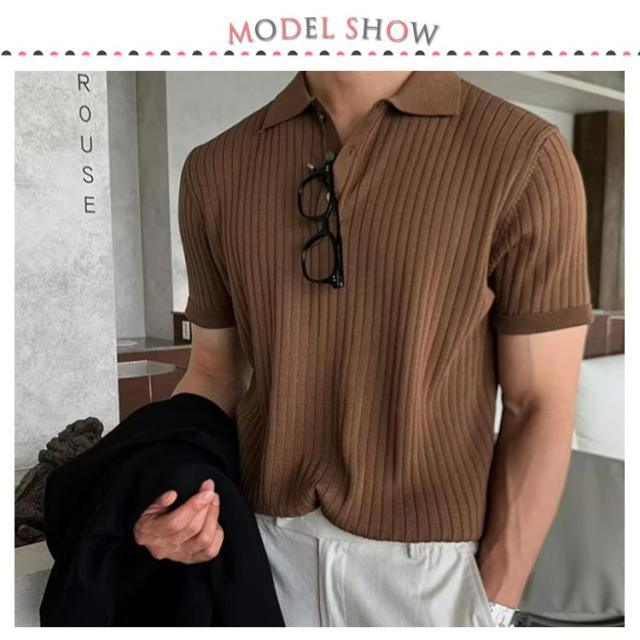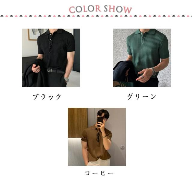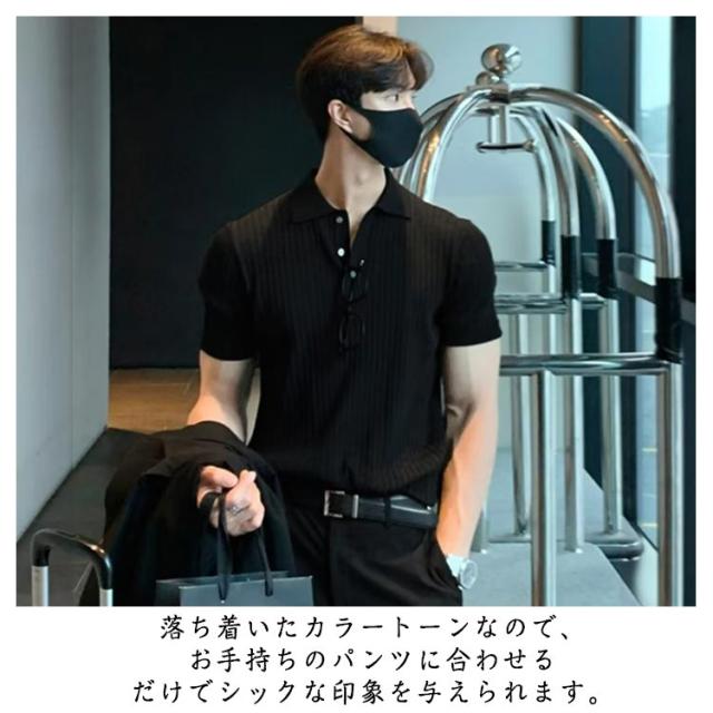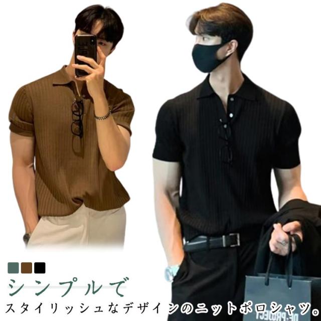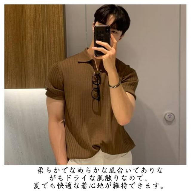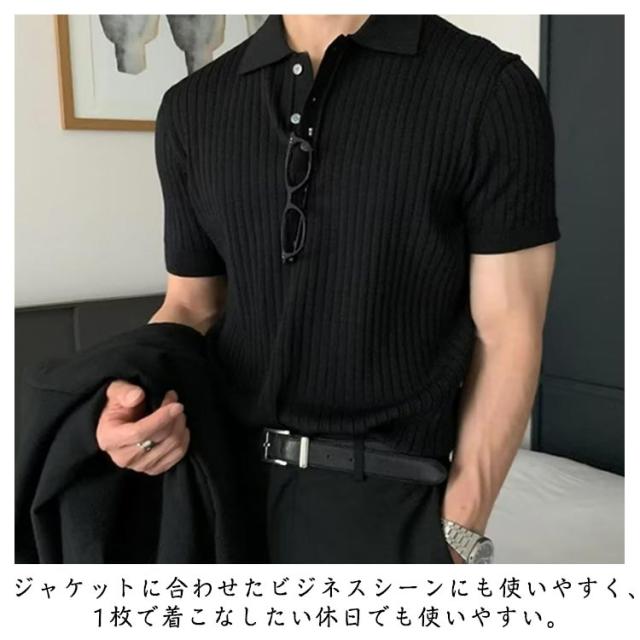 メンズ ポロシャツ トップス ニット サマーニット リブニット リモートワーク 薄手 ポロシャツ 春夏 ビジネス スリム 韓国風 ゴルフ カジュアル 無地 紳士服 送料無料