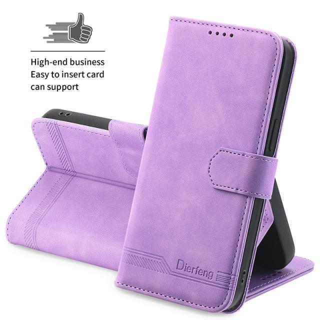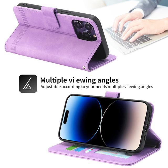 ● 型押ししたレザーと落ち着いたカラーが大人っぽい、定番の手帳型スマホケースです。