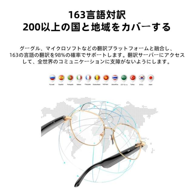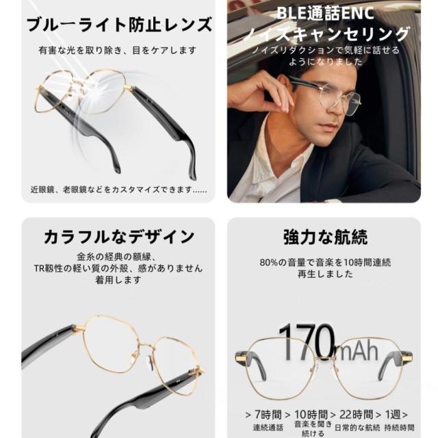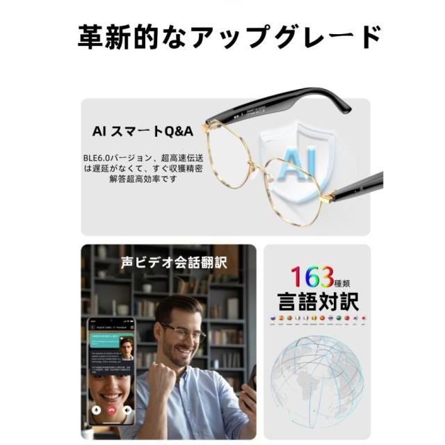 スマートグラス メガネ ワイヤレスメガネ スマート眼鏡 通知可能 音楽再生 遠隔カメラ ai機能 翻訳機能 サングラス ワイヤレスイヤホン スポーツメガネ ブルート