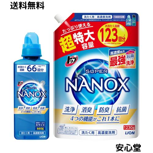 トップ ナノックス(NANOX)【まとめ買い 大容量】トップ スーパーナノックス 蛍光剤・シリコーン無添加 高濃度 洗濯洗剤 液体 本体大ボト