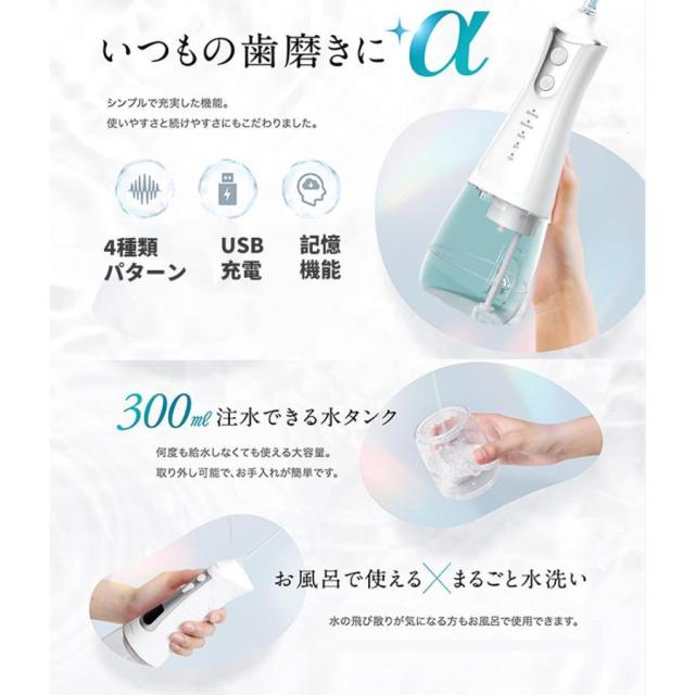 口腔洗浄器 歯垢除去 口内洗浄機 超音波 電動 ジェットウォッシャー ウォーターピック ジェットフロスコンパクト usb充電式 歯磨き 歯周病予防 300ml 敬老の日