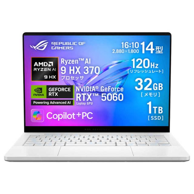 ASUS エイスース ゲーミングノートパソコン ROG Zephyrus G14 [ RTX 5060 / 14型 / Win11 Home / Ryzen AI 9 / メモリ32GB / SSD1TB ] プラチナホワイト GA403WM-AI9R5060W