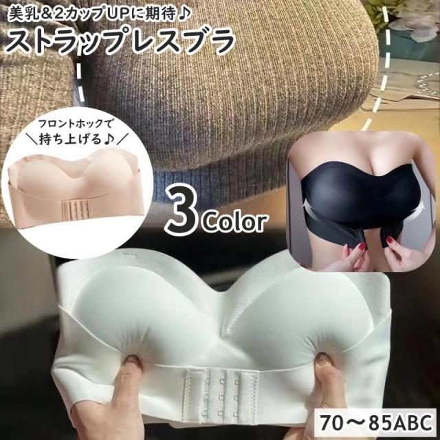 ストラップレスブラ ブラジャー 3段ホック フロントホック 調節可能 持ち上げる レディース 女性 婦人 インナー 下着 ノンワ