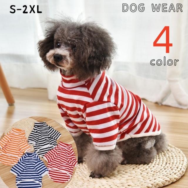ドッグウェア カットソー 犬服 犬用品 ペット用品 ペット服 小型犬 中型犬 袖あり ハイネック ボーダー しましま シンプル