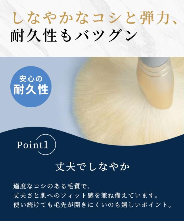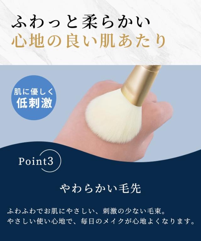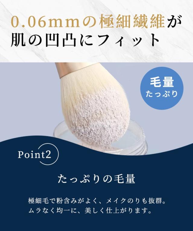 パウダーファンデーション用のブラシのことを言います。やわらかな肌あたりで心地よく仕上げます。