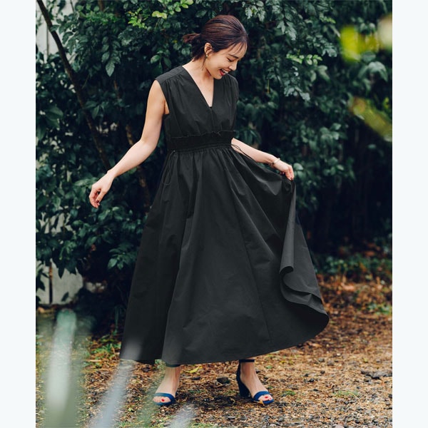 ウエストのフリルデザインがポイントのワンピース。
