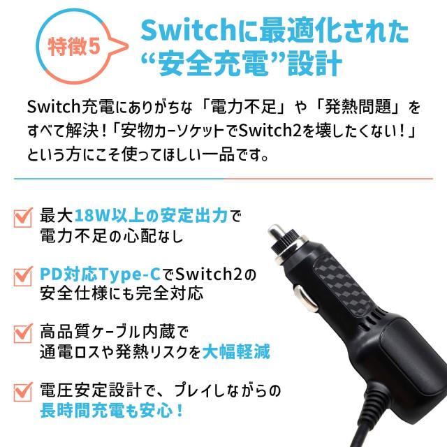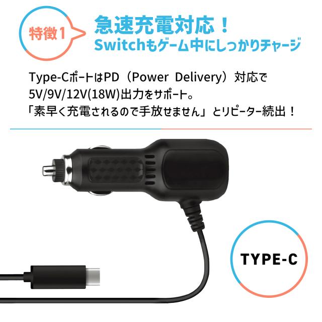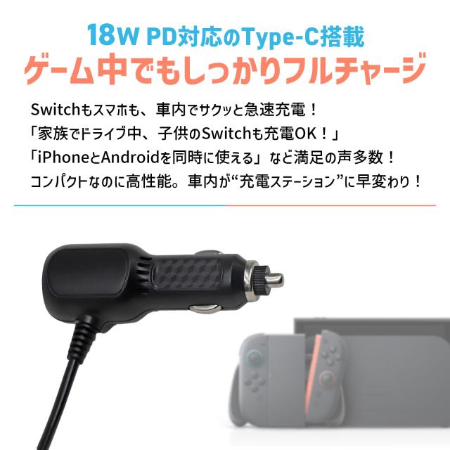 Nintendo Switch 2 Nintendo Switch 有機EL Nintendo Switch Joy-Con 任天堂 スイッチ2 カーソケット 充電器 充電 持ち運び 軽量 軽い 旅行 車用 コンパクト 車 移動 Type-C ケーブル USB スイッチ ゲーム 周辺機器 アクセサリー カーアクセサリー ブラック