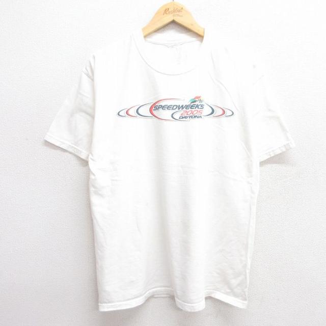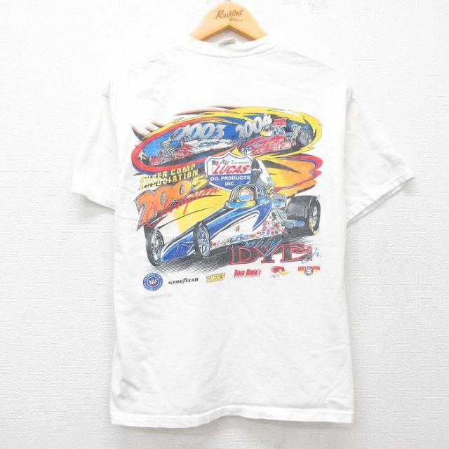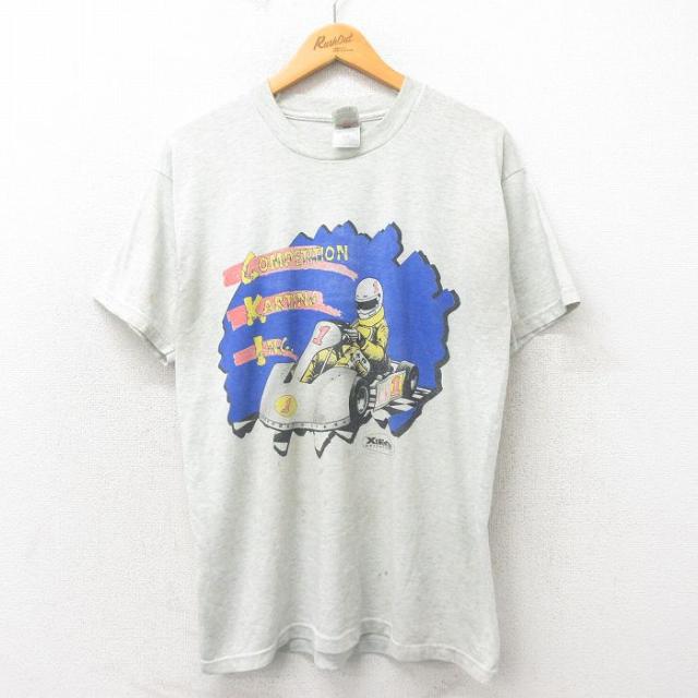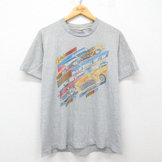 古着 フルーツオブザルーム 半袖 ビンテージ Tシャツ メンズ 00年代 00s レーシングカー クルーネック グレー 霜降り Lサイズ 中古 古着