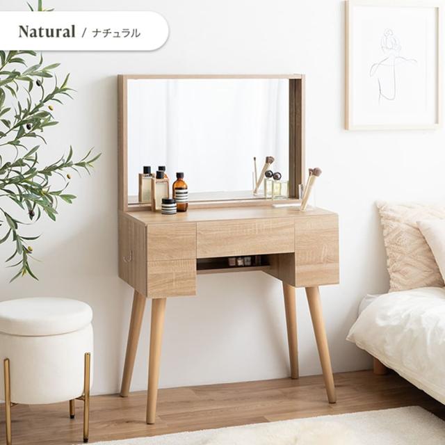 幅約71cmの広々とした天板と、全身がしっかり映るワイドミラーで、メイクやヘアセットがスムーズに。