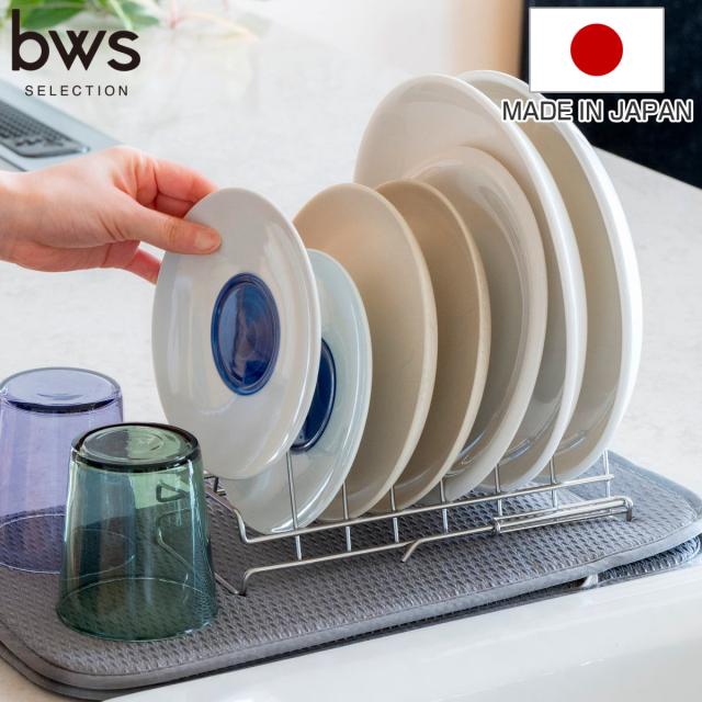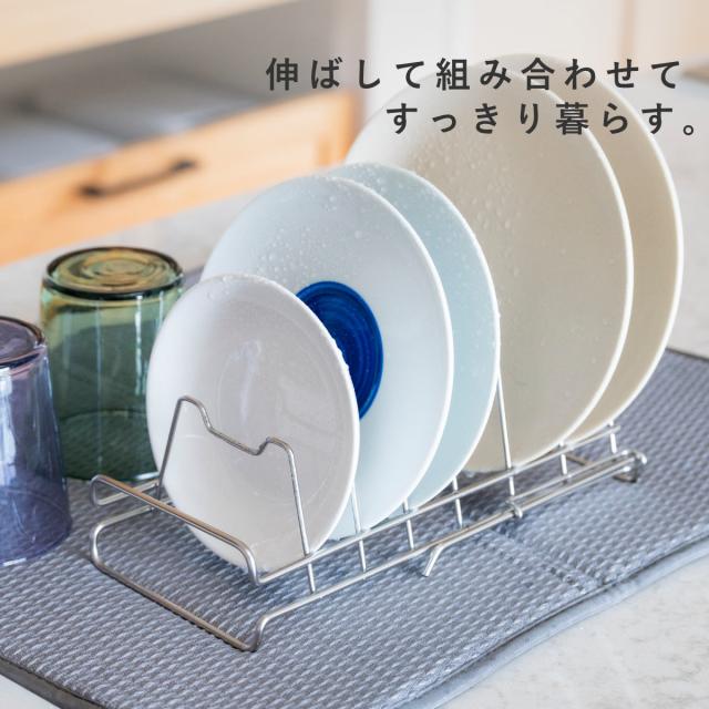 ビーワーススタイル すっきり暮らす ディッシュラック ( 水切り 伸縮 ラック 皿立て 水切りトレー 水切りかご ステンレス 日本製 燕三条 食洗機対応 お皿 7枚 まな板 まな板スタンド コンパクト おしゃれ )