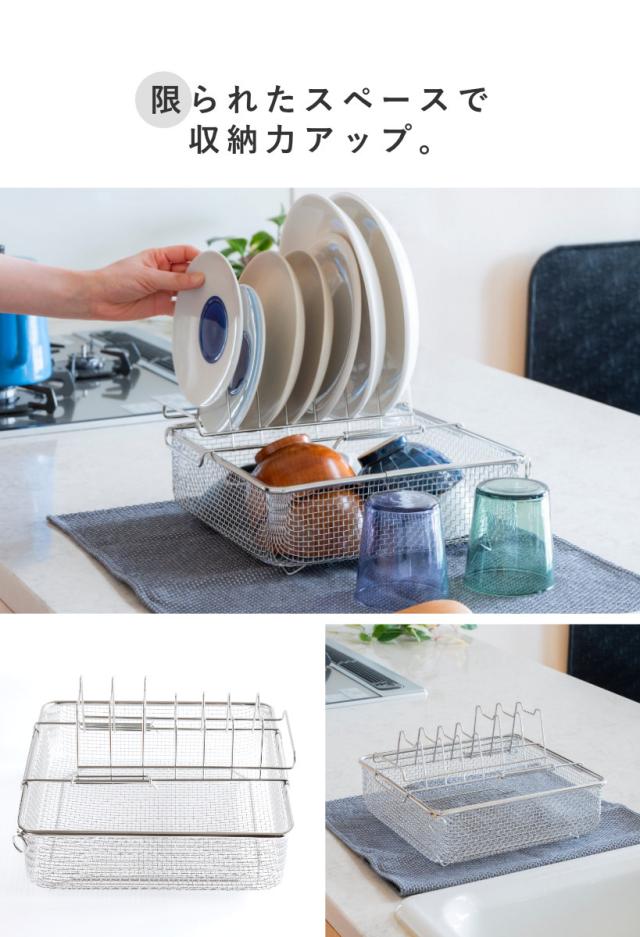 《 LH14776 LH11143 水切り籠 洗い物 食器 洗い 乾燥 平皿 深皿 茶碗 お椀 立てる 乾きやすい スタッキング 省スペース 場所をとらない ステンレス製 長方形 スリム 食洗機OK 18-8ステンレス オールステンレス メッシュ 自然乾燥 シンク横 シンク回り シンク周り 洗物 食器立て 水きり ステンレス水切りカゴ 水切り収納 キッチン収納 キッチン用品 台所用品 キッチングッズ 便利 役立つ おすすめ オススメ シンプル スタイリッシュ シルバー 頑丈 丈夫 ビーワースセレクション 新生活 一人暮らし bws SELECTION 》