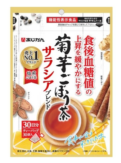 ●あじかんこだわりの国産焙煎ごぼう茶をベースに、話題のサラシア、菊芋をブレンドしました。●本品を1日1個飲用いただくことで、サラシア由来サラシノール2.0mgを摂取することができます。●大麦麦芽・はと麦をブレンドして食事に合うすっきりとした味に仕上げました。お好きな食事と合わせてお楽しみください。●機能性表在食品届出番号 J41届出表示本品には、サラシア由来サラシノールが含まれます。
