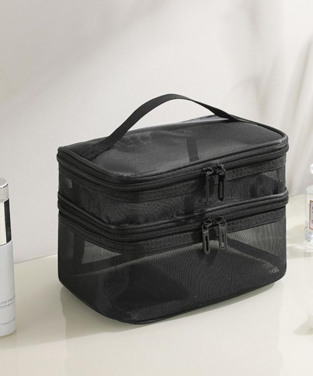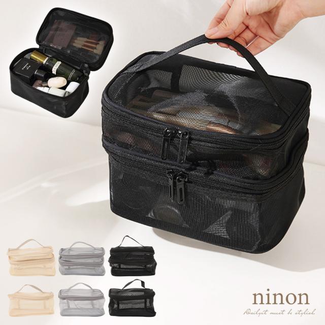 化粧ポーチ 大容量 大きめ メッシュ メイクポーチ 持ち運び 軽量 大きく開く おしゃれ 大人かわいい 黒 機能的 仕切り コンパクト シンプル スタンド 縦 タテ型 トラベル メンズ 旅行 メッシュポーチ 送料無料