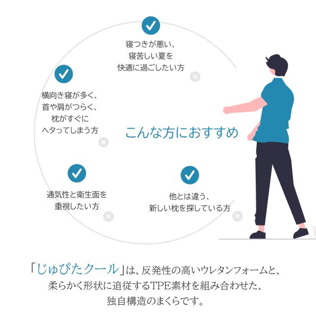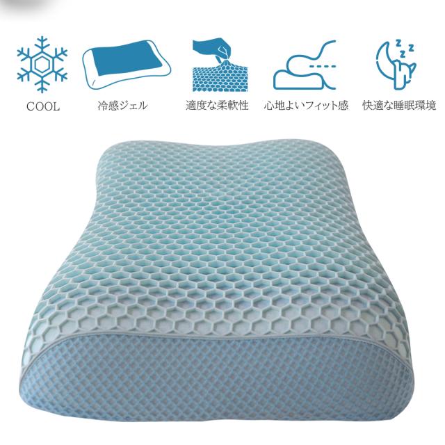 まくら ピロー 冷感 TPE モールドフォーム 枕 沈み込みすぎず頭に沿う ジェル枕 枕のムレ軽減 涼感タイプ じゅぴたクール
