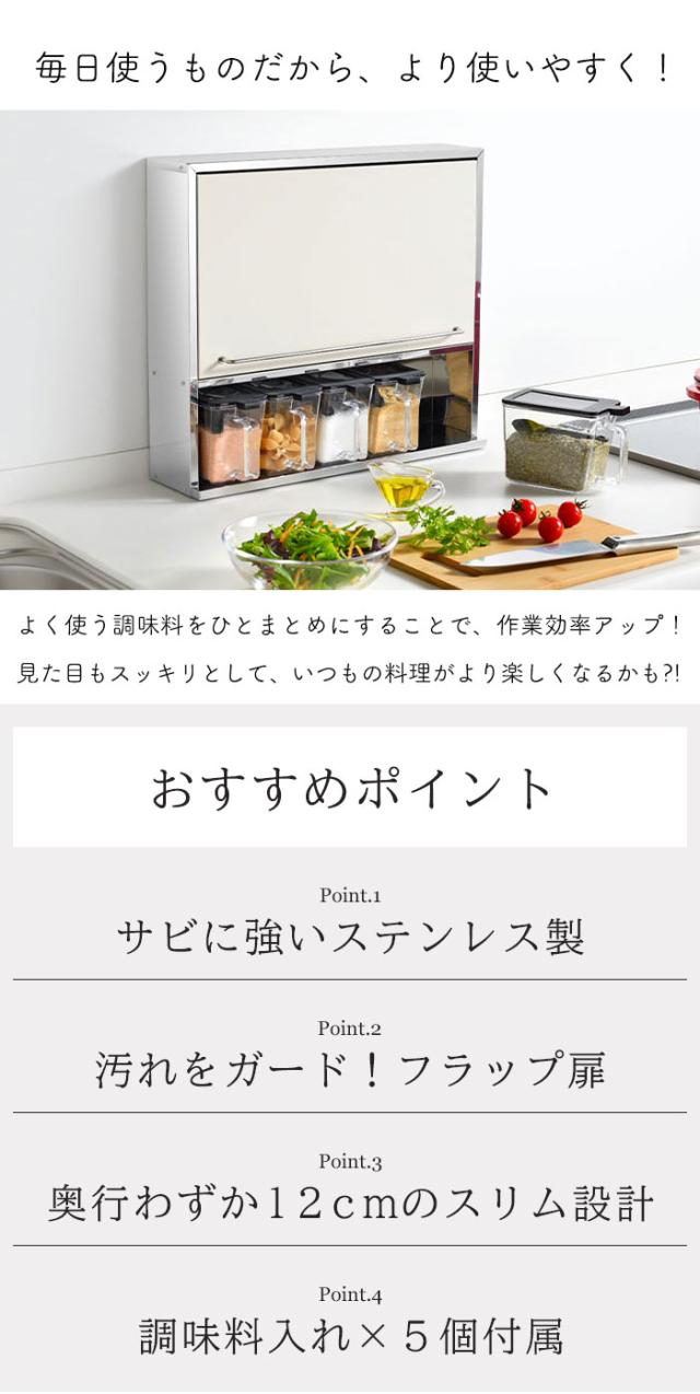 | 調味料ラック 隠せる スパイスストッカー ステンレス さびにくい スパイスラック 調味料入れセット 調味料収納 ステンレス製 調味料 ポット 5杯 5個 扉付き 調味料入れ ワイド 省スペース おしゃれ スパイス入れ スパイス 収納 調味料 ラック キッチン収納 コンロ周り キッチン コンパクト 調味料ポット キッチンラック ホワイト ブルー 日本 日本製 完成品 |