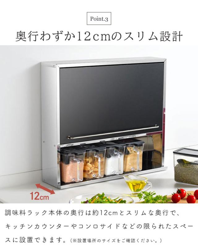スパイスラック ステンレス 調味料ラック ホワイト/ブラック スパイスストッカー 2段 ワイド 調味料ポット5個付き ステンレス製 日本製 キッチンラック 奥行12cm 省スペース キッチン上ラック スパイス収納 調味料 スパイス おしゃれ 新生活 一人暮らし