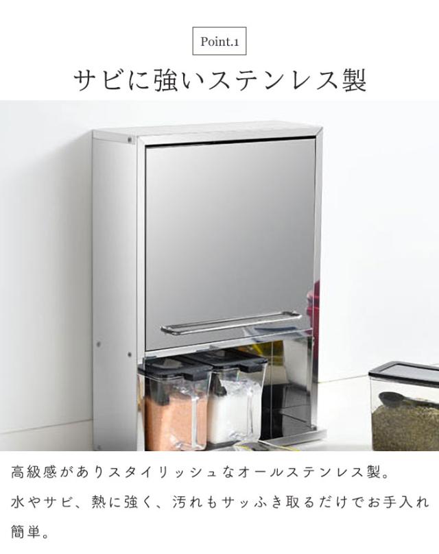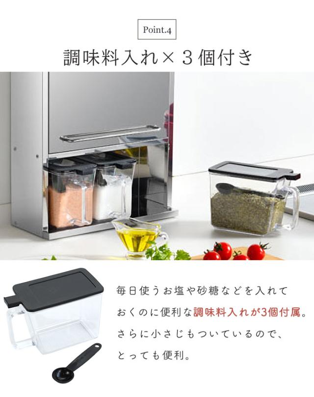 | 調味料ラック 隠せる スパイスストッカー ステンレス さびにくい スパイスラック 調味料入れセット 調味料収納 ステンレス製 調味料 ポット 3杯 3個 扉付き 調味料入れ スリム 省スペース おしゃれ スパイス入れ スパイス 収納 調味料 ラック キッチン収納 コンロ周り キッチン コンパクト 調味料ポット キッチンラック シルバー 日本 日本製 完成品 |