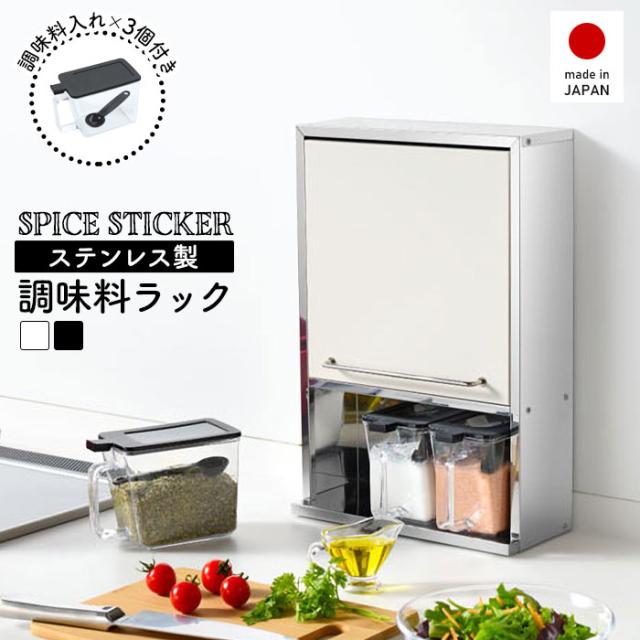 スパイスラック ステンレス 調味料ラック ホワイト/ブラック スパイスストッカー 2段 スリム 調味料ポット3個付き ステンレス製 日本製 キッチンラック 奥行12cm 省スペース キッチン上ラック スパイス収納 調味料 スパイス おしゃれ 新生活 一人暮らし
