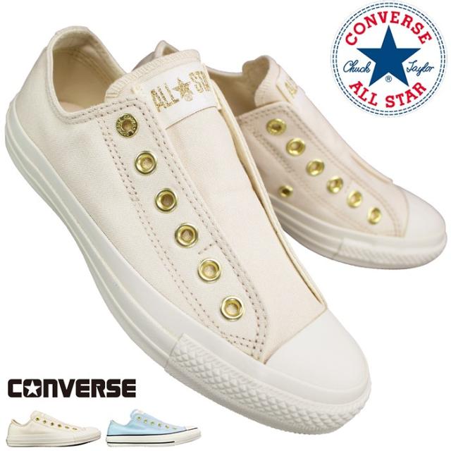 コンバース CONVERSE オールスター スニーカー スリップ FE GD OX ナチュラル・サックス 23cm〜24.5cm レディース ローカット カジュアルシューズ スリッポン キャンバスオールスター 紐なし靴 ALL STAR SLIP FE GD OX