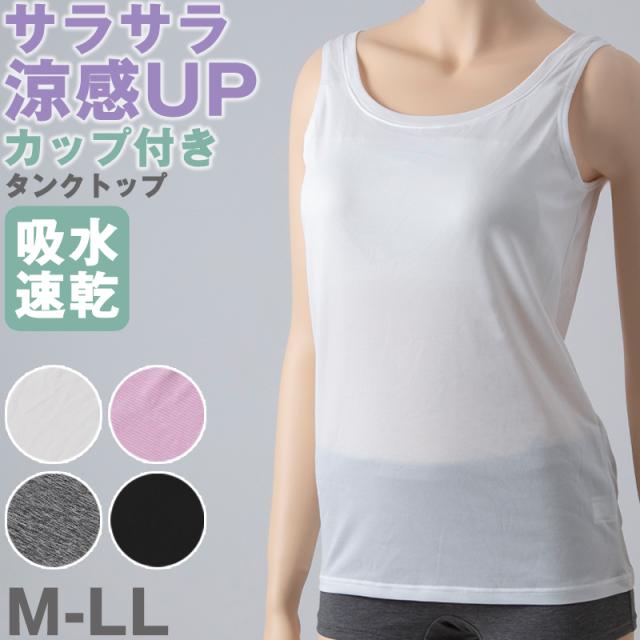 レディース タンクトップ インナー カップ付き 夏 吸水速乾 ムレない ストレッチ 伸縮性 汗冷え防止 サラサラ 下着 肌着 サラッとした着心地 遮熱 アウトドア スポーツウェア 汗で蒸れにくい 白 黒 グレー ピンク M L LL M〜LL